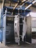 The machine applies to many species, medium and small quantities of castings, forgings, welding pieces of the surface of clean-up or strengthened, especially for fear of touching the slender thin-walled parts, valves and other pieces of the surface of clean-up or strengthening the more appropriate. It can clean demur and flash the surface of sand castings and strongly shot blast the original surface of the steel. By removing rust and welding slag and oxide, it obtains a certain roughness uniform metallic luster surface, removes stress, improves steel surface quality and corrosion resistance coating. The machine uses the double screw delivery system ,reducing pit depth, installation convenience, reducing investment costs; and the hook has three kinds of movements, free rising and dropping,walking and interior rotating; and positive rotation and reversal rotation to ensure that the work piece can be effectively cleaned without dead places. Process flow: Loading by hook→ delivery into shot blasting chamber→ shot blasting→ delivery out of chamber→ unloading Particulars Q376 Size of workpiece Diameter: Height: Φ600mm 1100mm Size of shot blasting chamber Length: Width: Height:1500mm 1500mm 2150mm Impeller head Quantity: Shot blasting capacity Power: 2 units 2×150kg/min 2×7.5kw Elevator Lifting capacity: Power:18t/h 3kw Screw conveyor Delivery capacity:18 t/h Separator Separating capacity: Air speed: 18 t/h 45 m/s Lifting hook Max loading: Self-rotation: 600 kg 2.8 r/min Dust removing system Model: Air volume: Power: MC-24 3500 m3/h 2.2kw Total power: 23kw Exhaust emission 100mg/ m3 Noise ≤85dBA